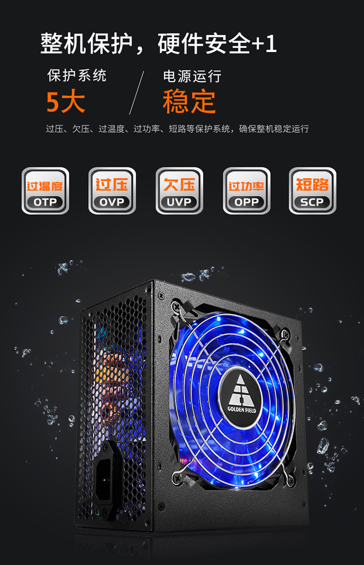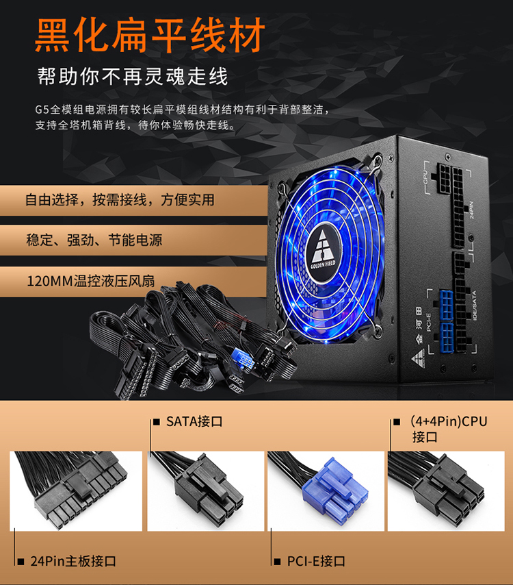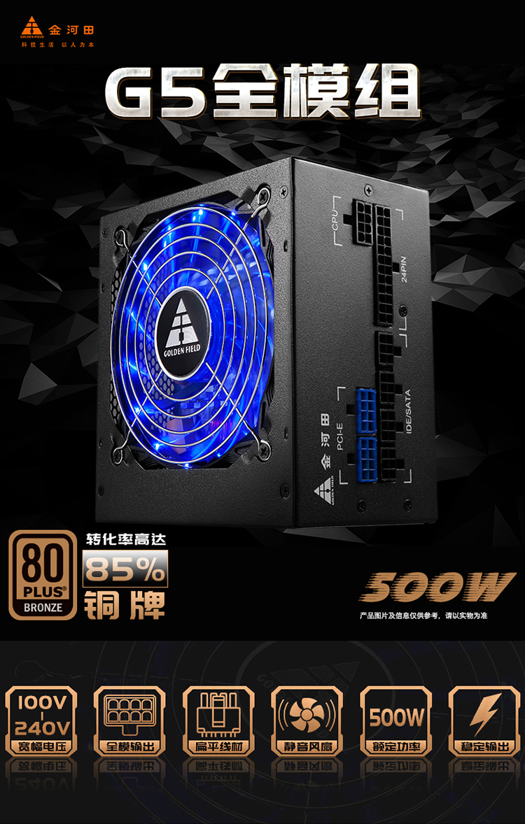 金河田(Golden field)额定500W G5全模组台式机电脑电源(静音ATX/LED风扇/80PLUS铜牌认证/PC主机电源)