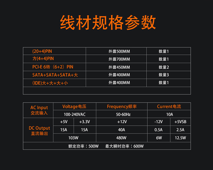商品名称:金河田(Golden field)额定500W G5全模组台式机电脑电源(静音ATX/LED风扇/80PLUS铜牌认证/PC主机电源)